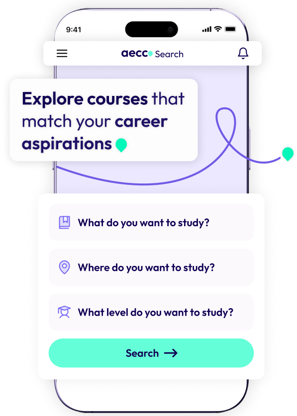 course search tool. Explore fields of interest or apply directly – all in a few clicks.